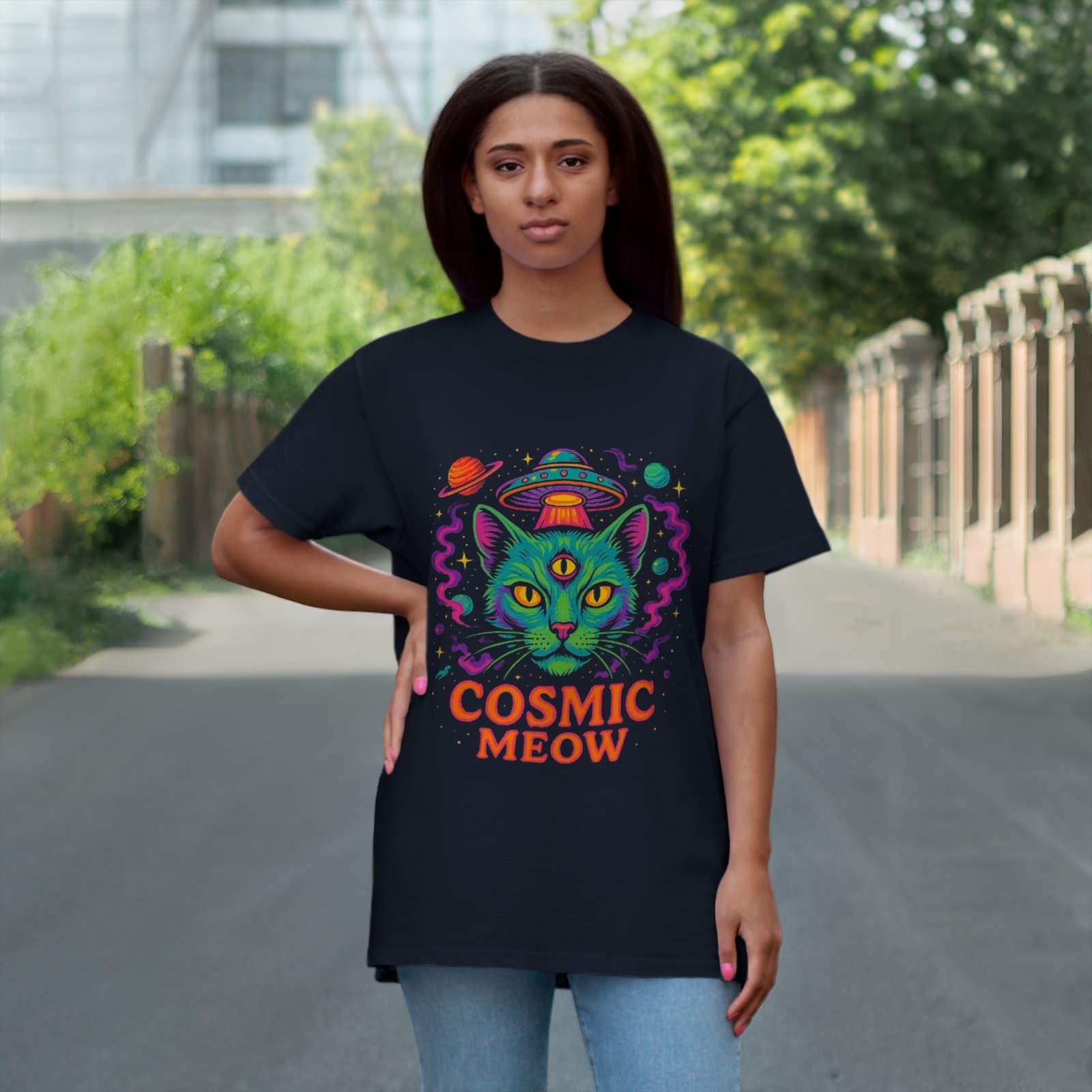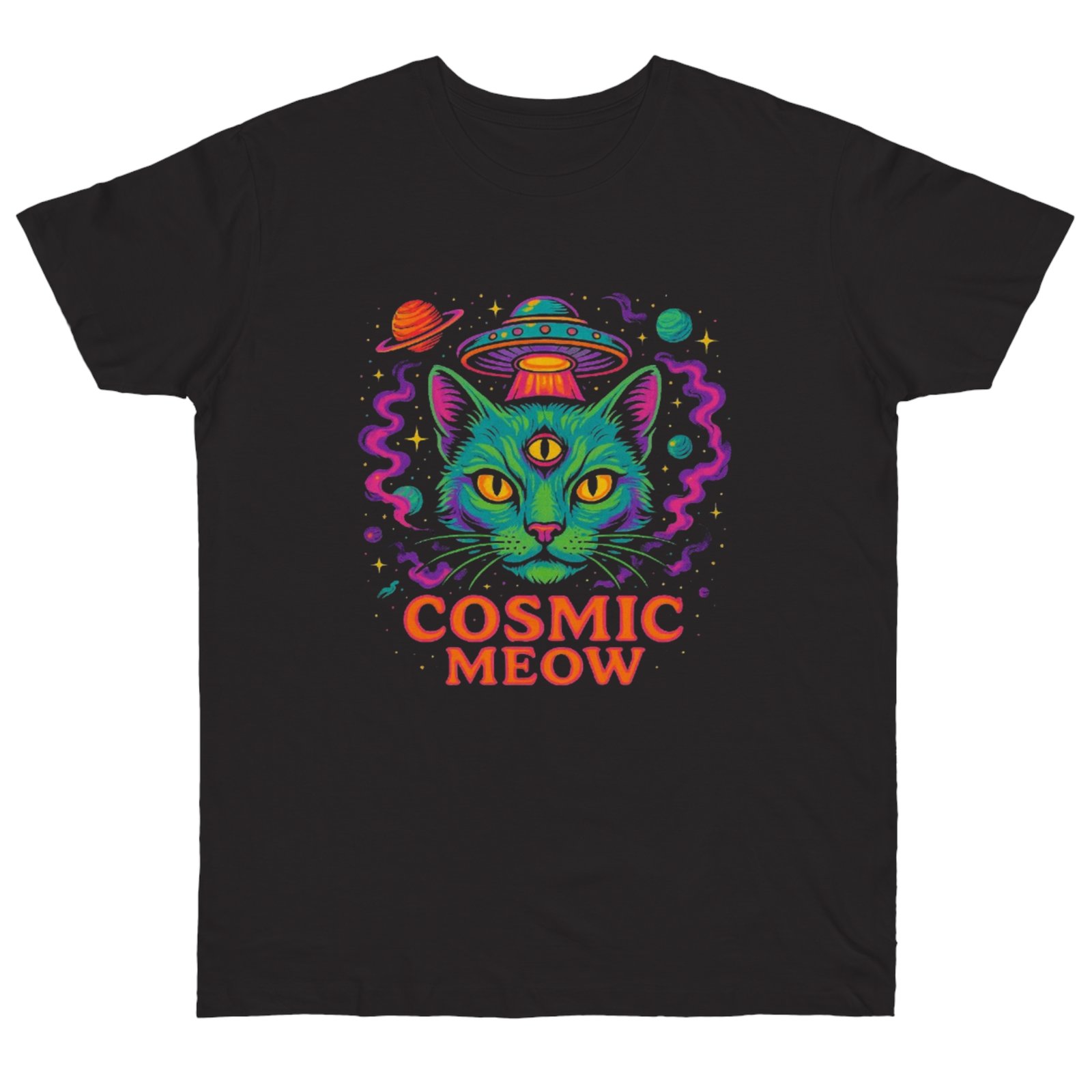 Cosmic Meow T-Shirt | Fun Cat Space Graphic Tee for Cat Lovers
