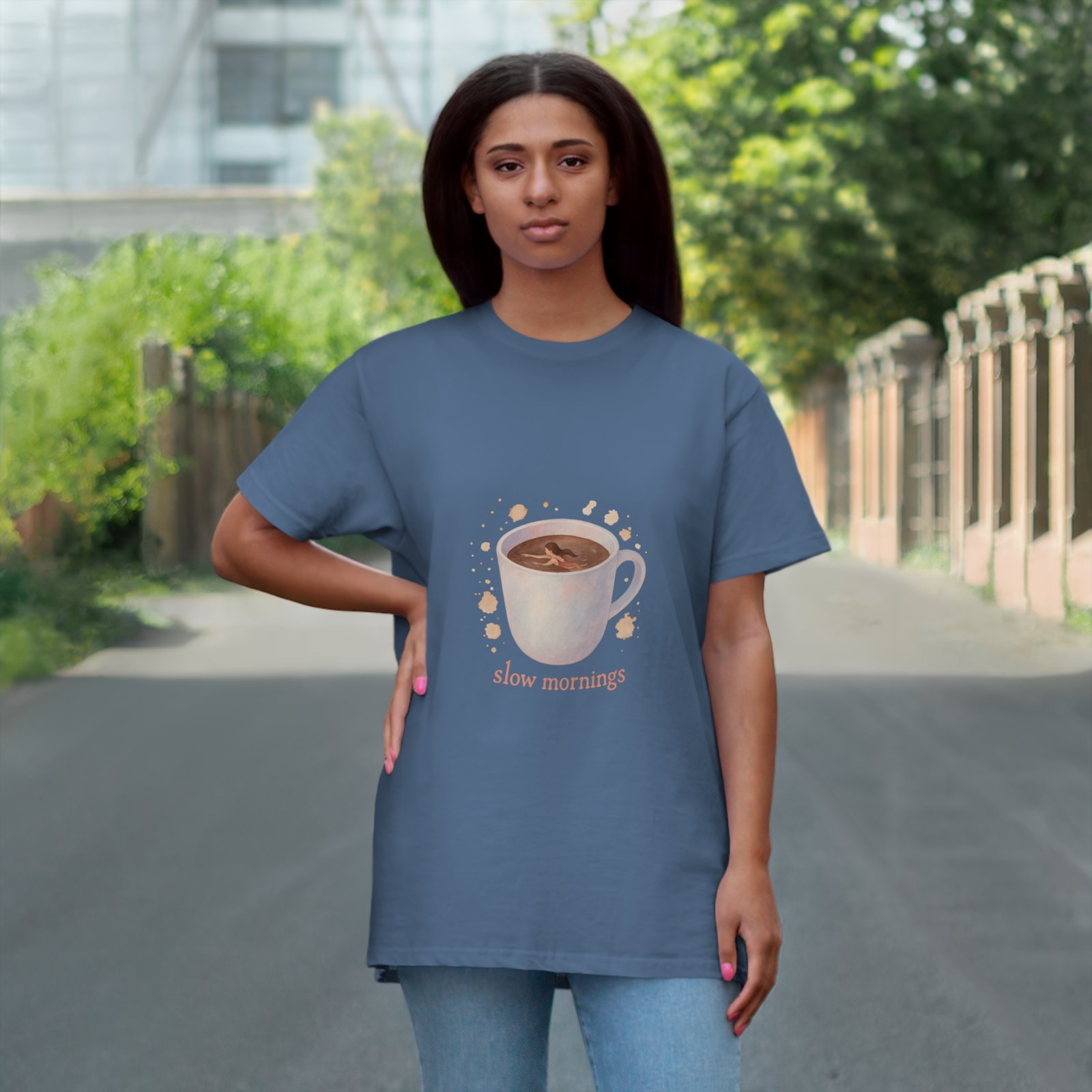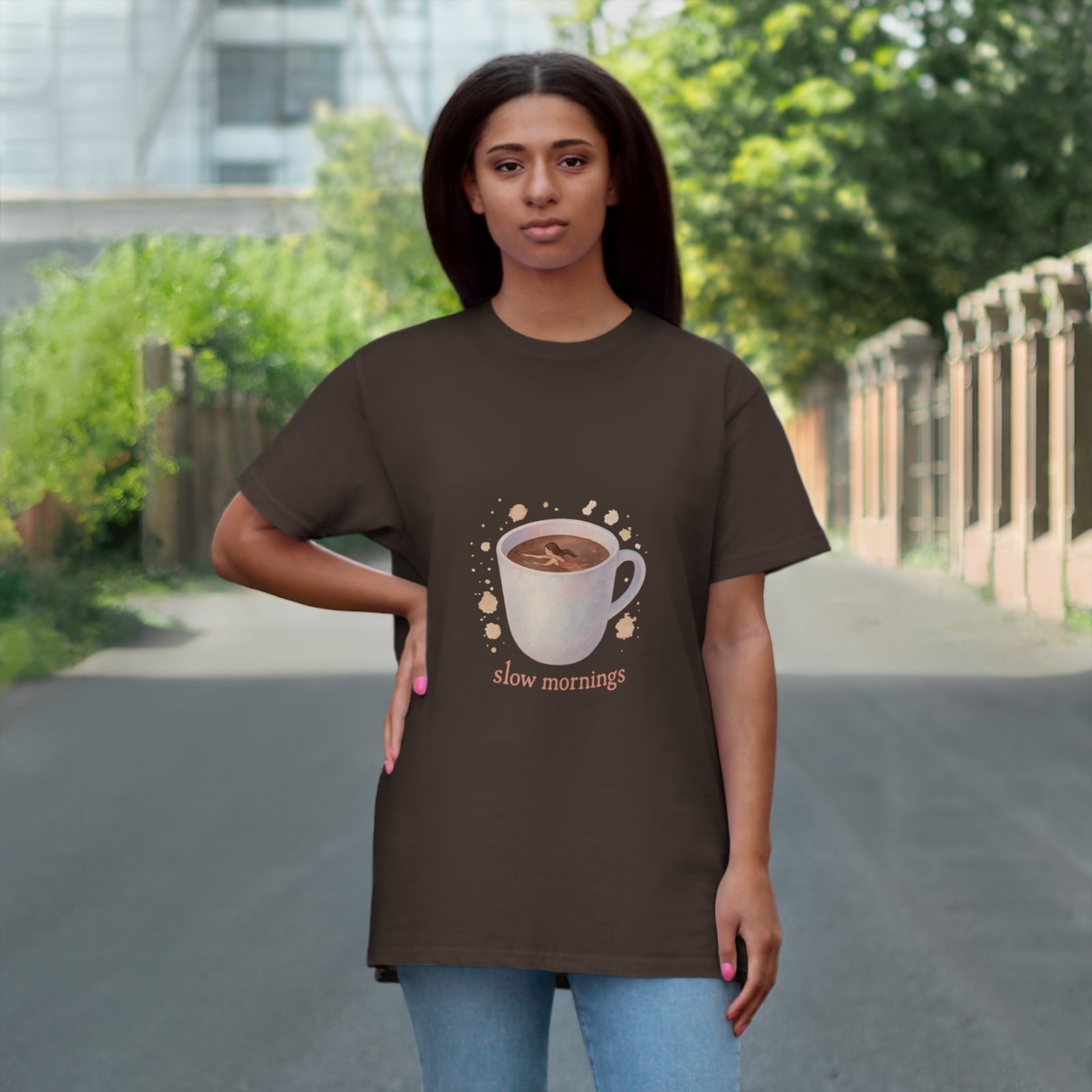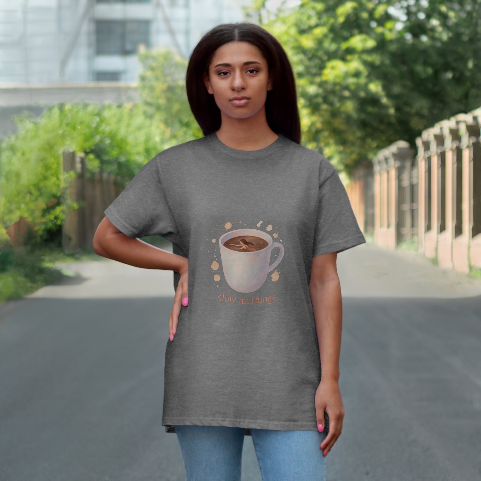 Embrace the calm of your mornings with this delightful T-shirt. Featuring a beautifully illustrated mug design, it brings a warm, inviting vibe that’s perfect for cozy days spent sipping coffee or tea. Made with soft, breathable materials, this T-shirt is ideal for lounging at home, casual outings, or as a thoughtful gift for coffee lovers and homebodies alike. Perfect for Mother’s Day, birthdays, or just because, it celebrates the beauty of savoring slow moments in life. Whether you’re enjoying a quiet morning or catching up with friends, this tee adds a touch of warmth and charm to any occasion.