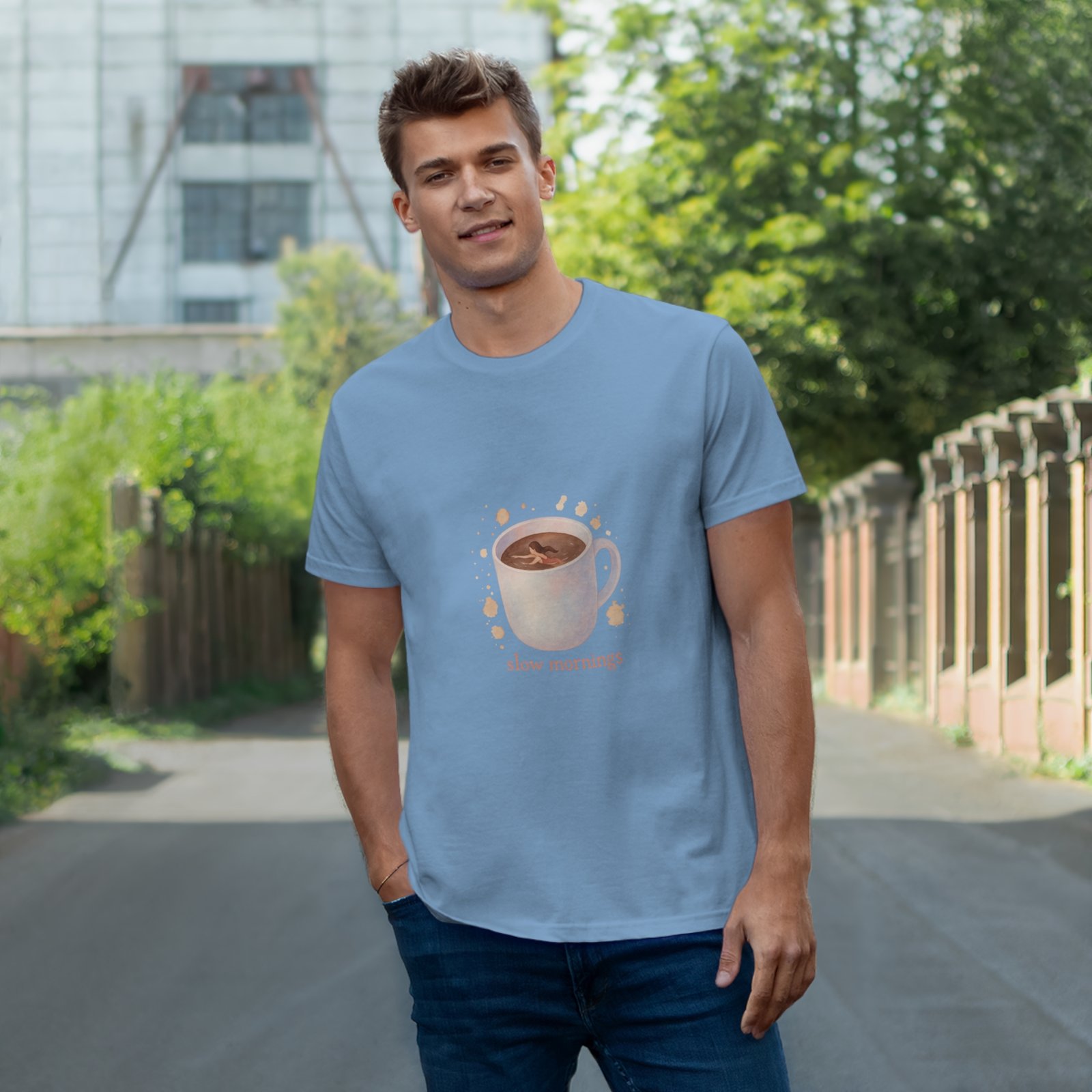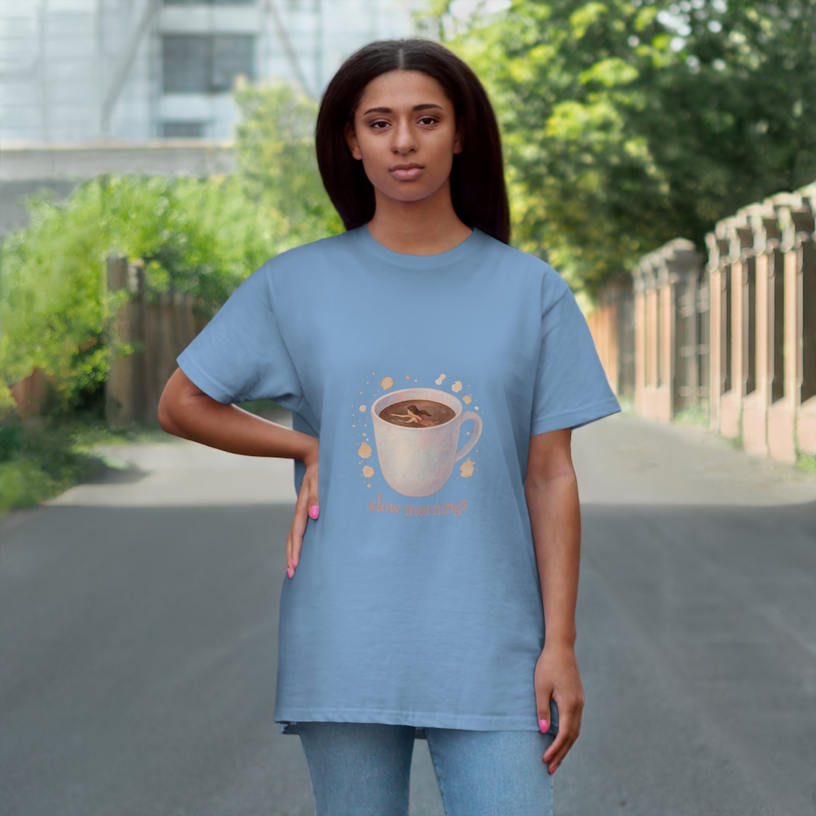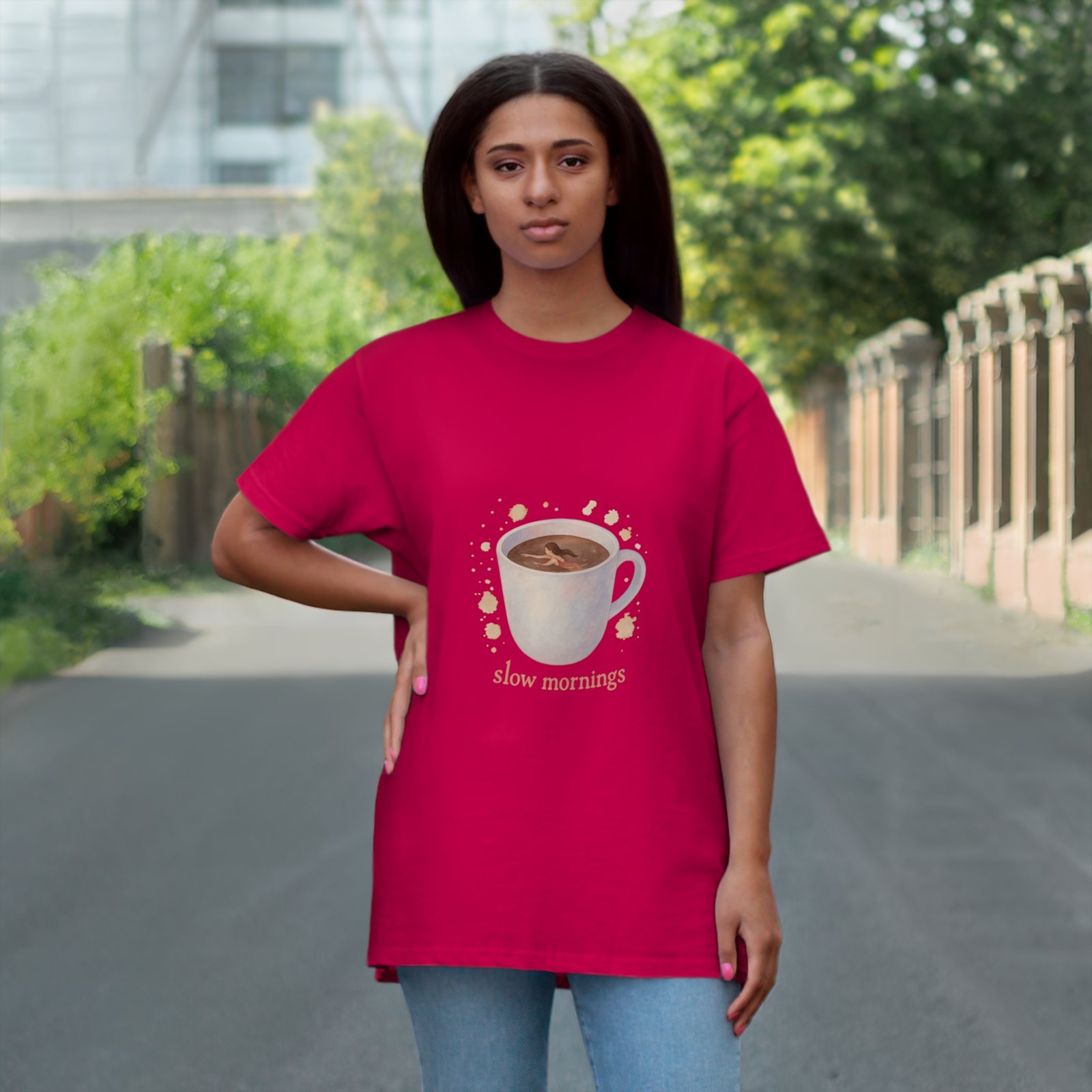 Embrace the calm of your mornings with this delightful T-shirt. Featuring a beautifully illustrated mug design, it brings a warm, inviting vibe that’s perfect for cozy days spent sipping coffee or tea. Made with soft, breathable materials, this T-shirt is ideal for lounging at home, casual outings, or as a thoughtful gift for coffee lovers and homebodies alike. Perfect for Mother’s Day, birthdays, or just because, it celebrates the beauty of savoring slow moments in life. Whether you’re enjoying a quiet morning or catching up with friends, this tee adds a touch of warmth and charm to any occasion.