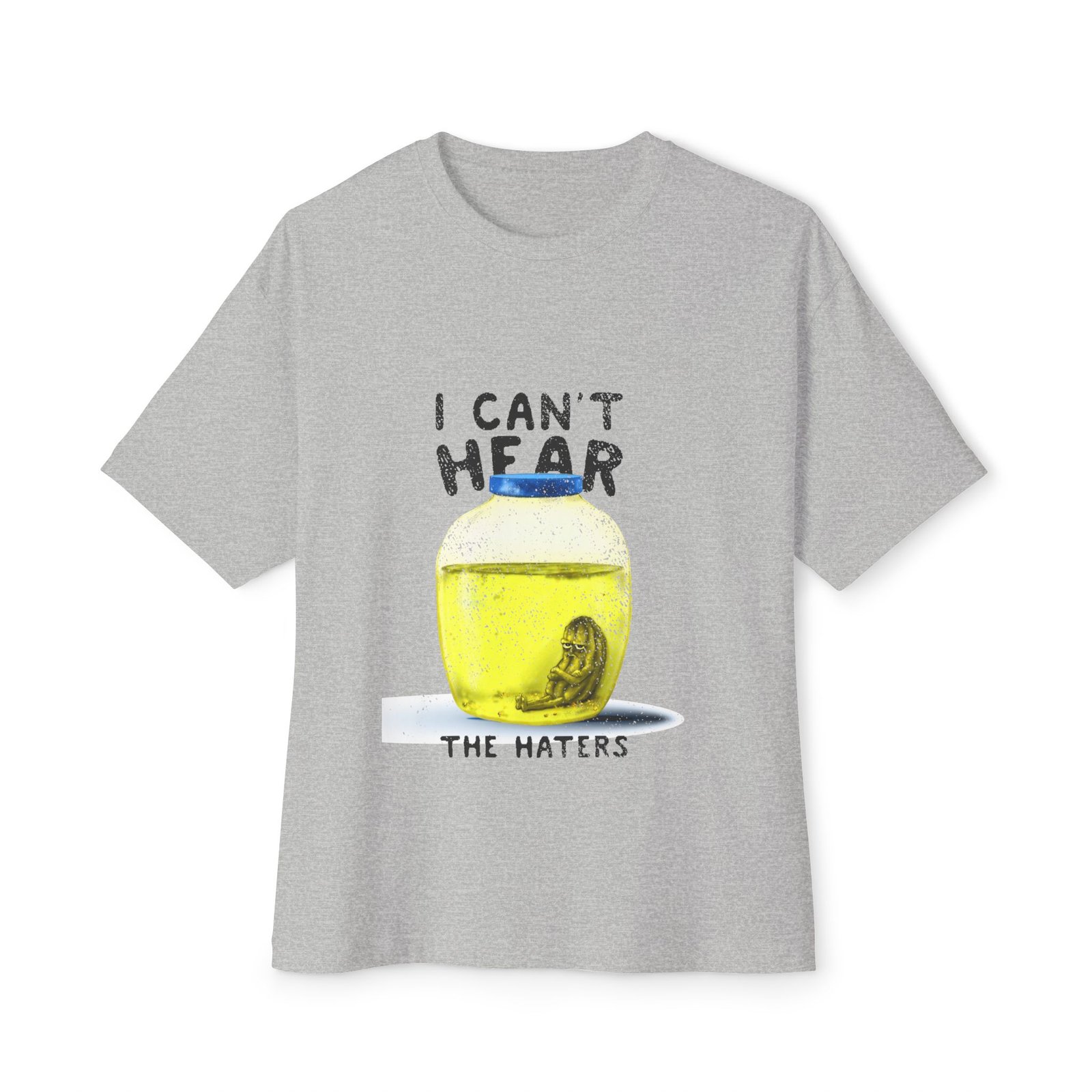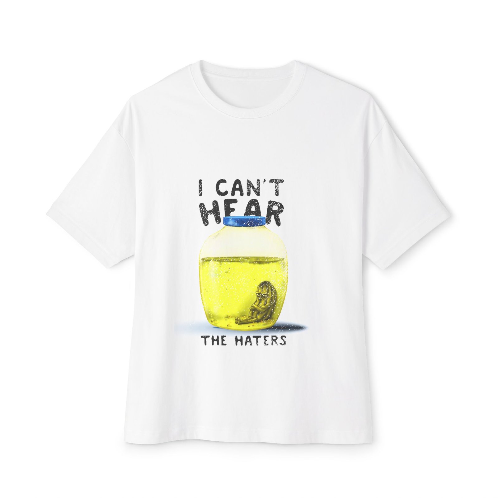 Funny Unisex Oversized Boxy Tee – “I Can’t Hear The Haters”