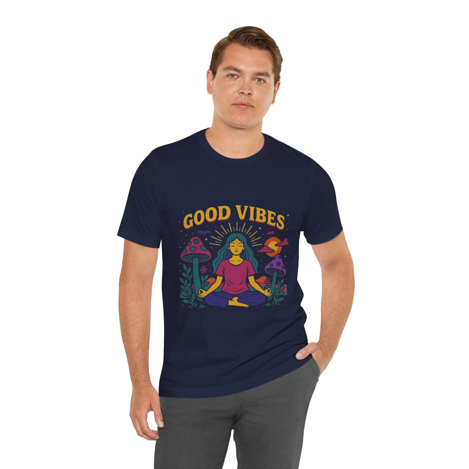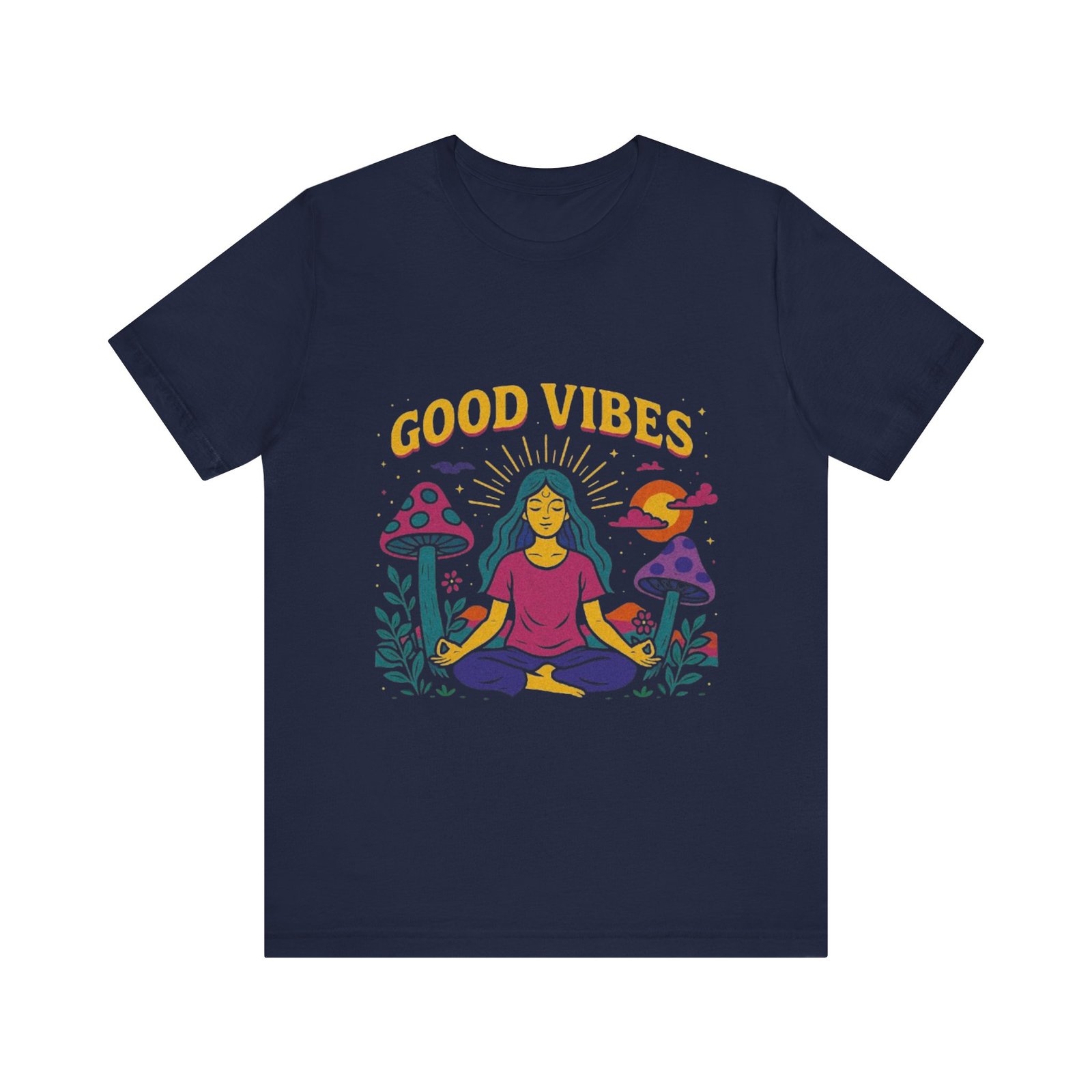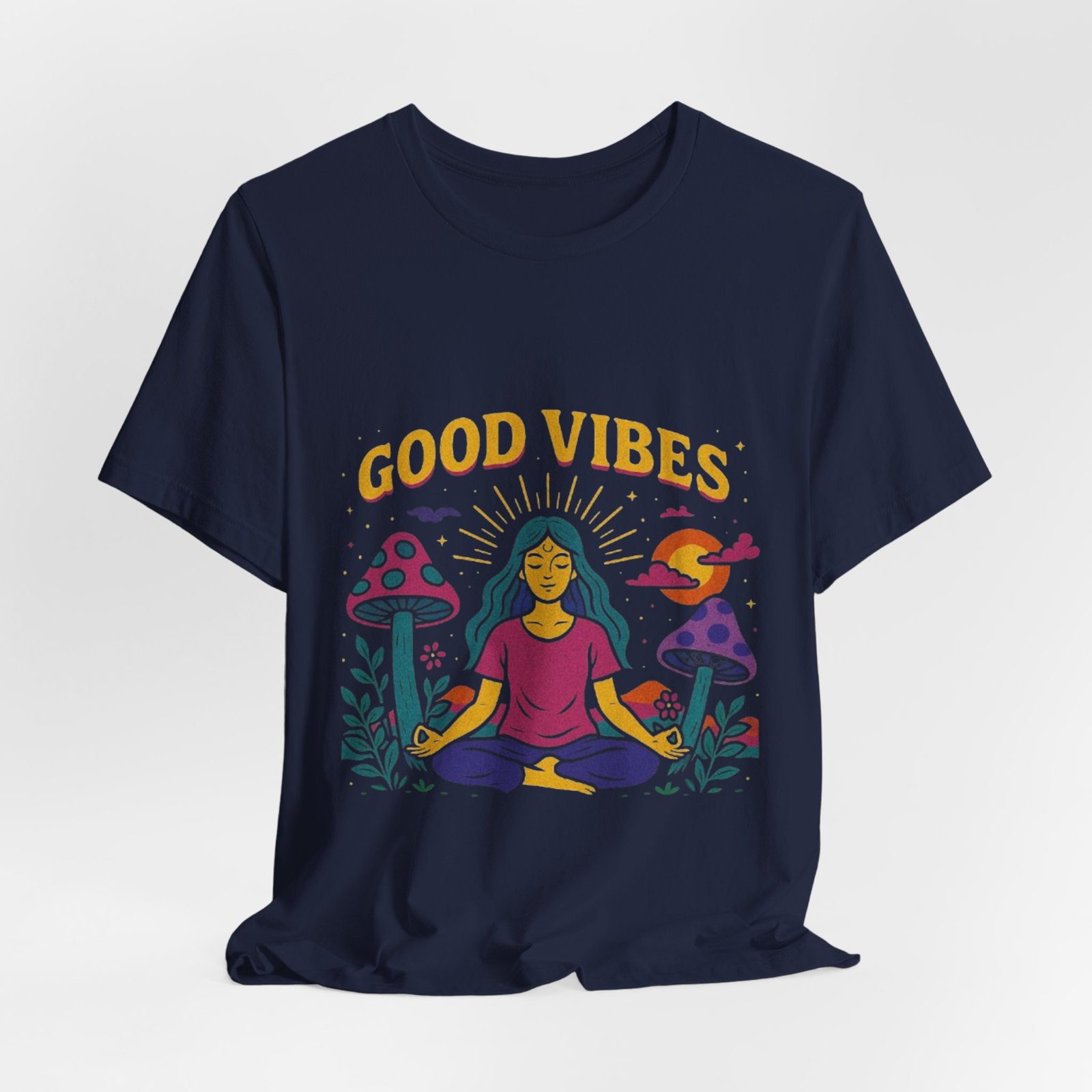 Be the first to review “Good Vibes Unisex Jersey Tee – Relaxed Fit Meditation Graphic Shirt”