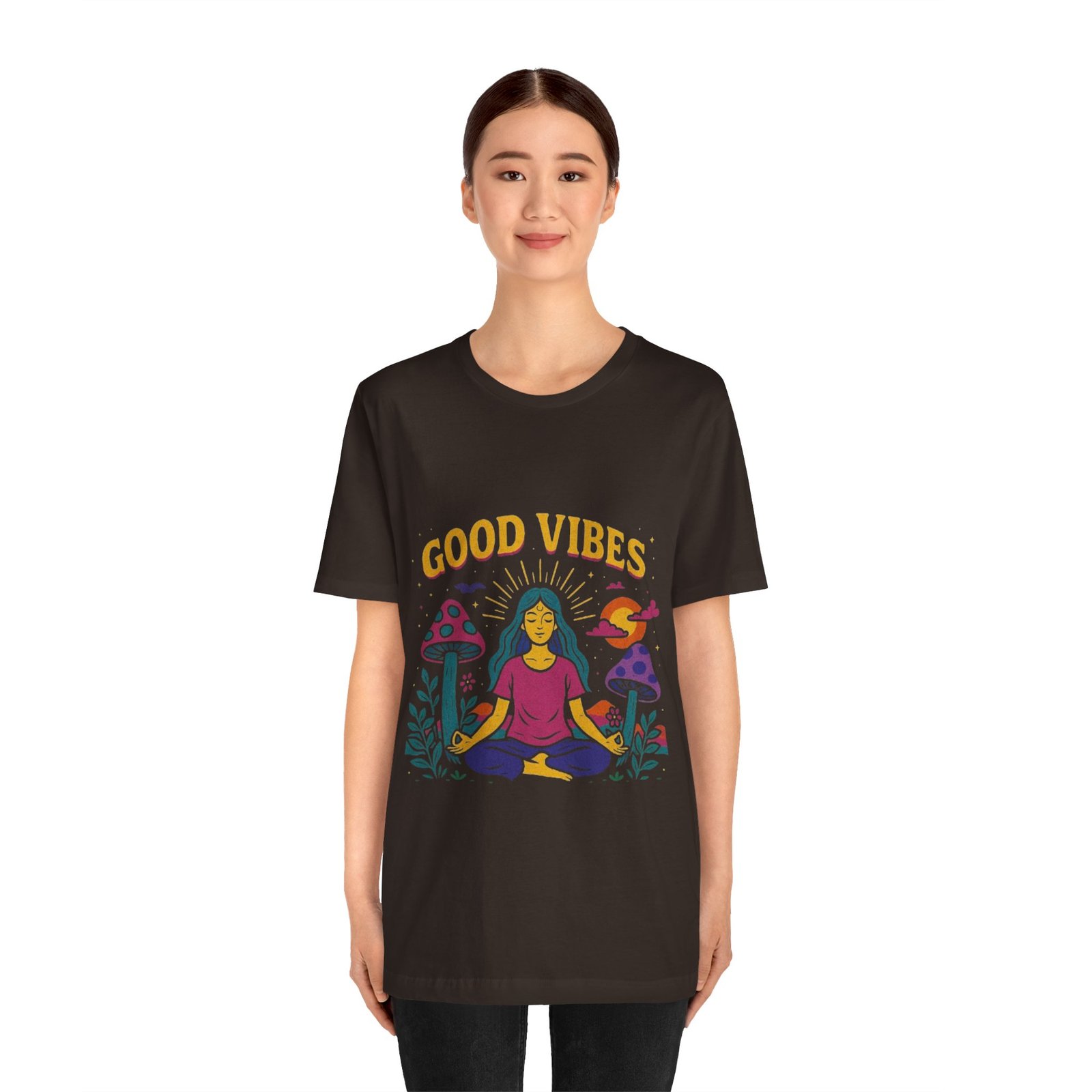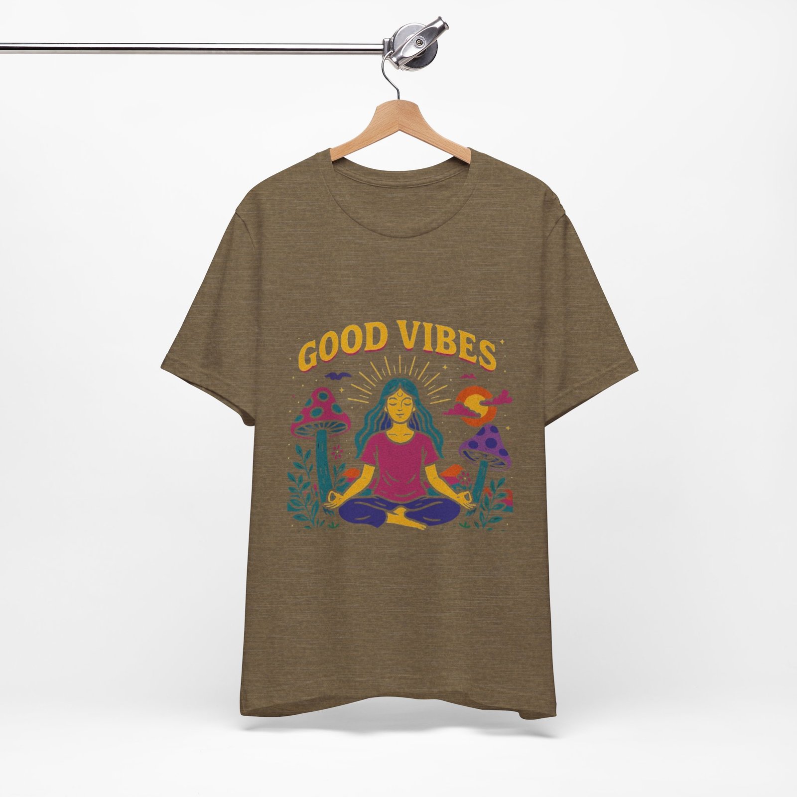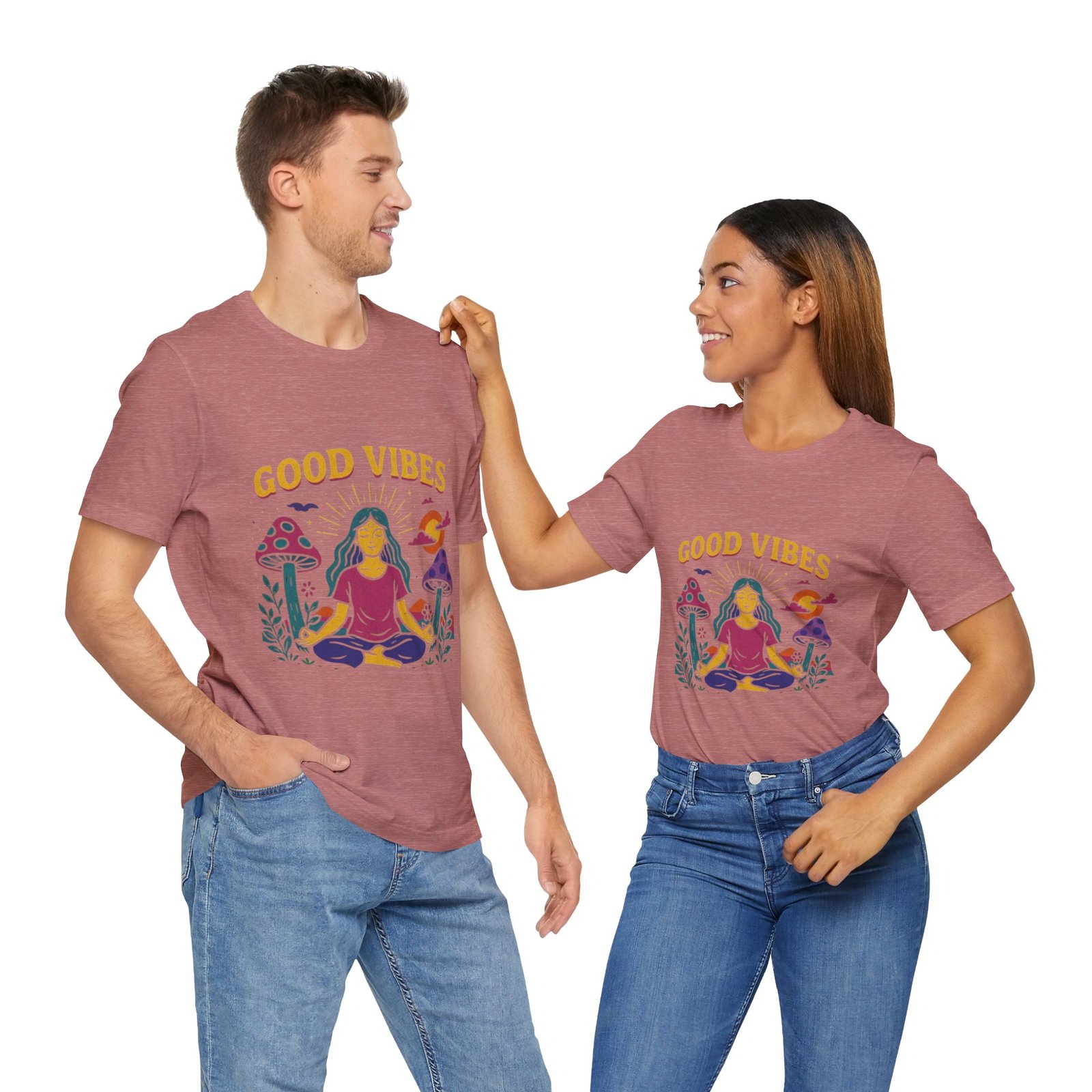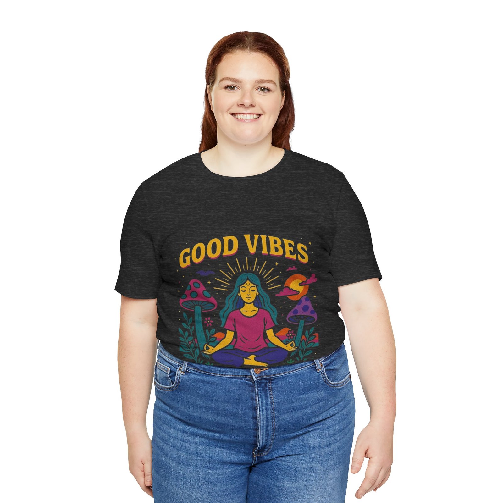Be the first to review “Good Vibes Unisex Jersey Tee – Relaxed Fit Meditation Graphic Shirt”