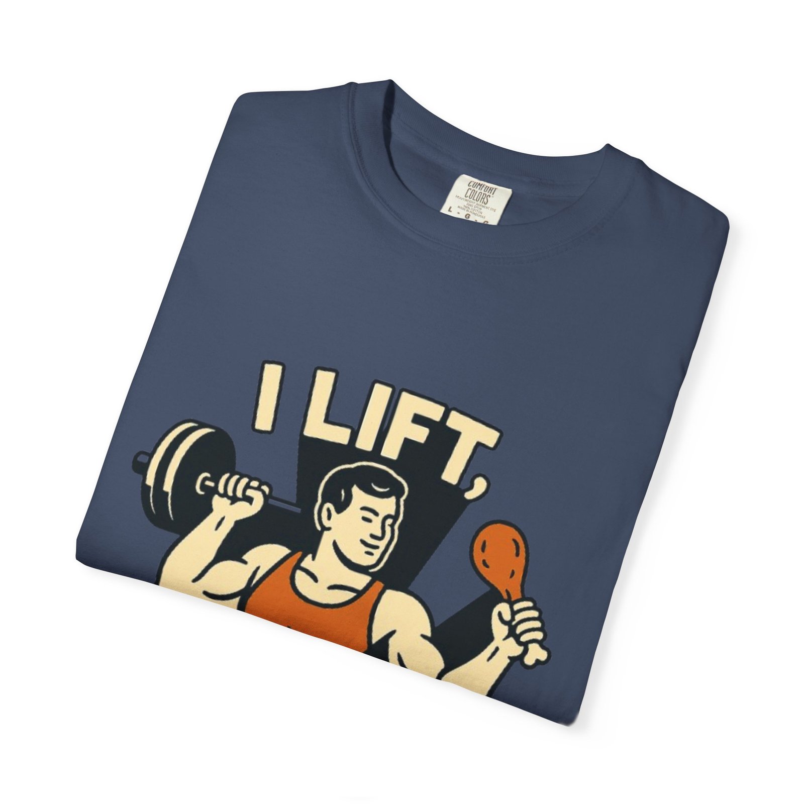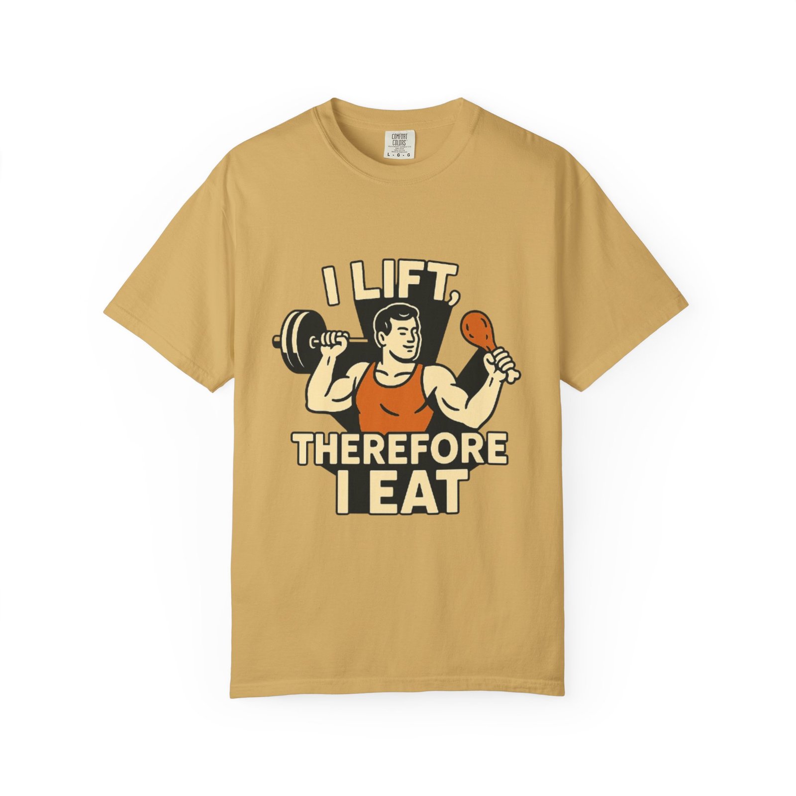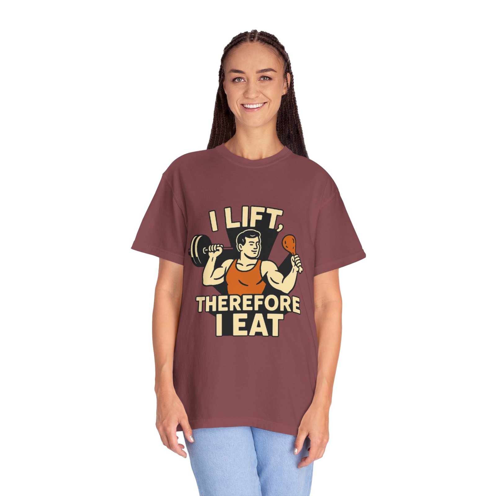 Humorous Fitness T-Shirt – I Lift Therefore I Eat, Gym Shirt, Workout Gift, Fitness Humor, Exercise Apparel, Funny Workout Tee